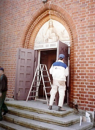 - Na plebanii wstawione zostały nowe drzwi i wymieniono przewód kominowy w salce katechetycznej. Podłączono również wodę z sieci wiejskiej.