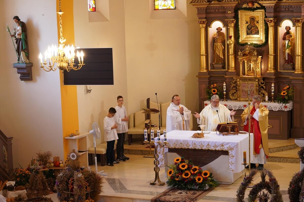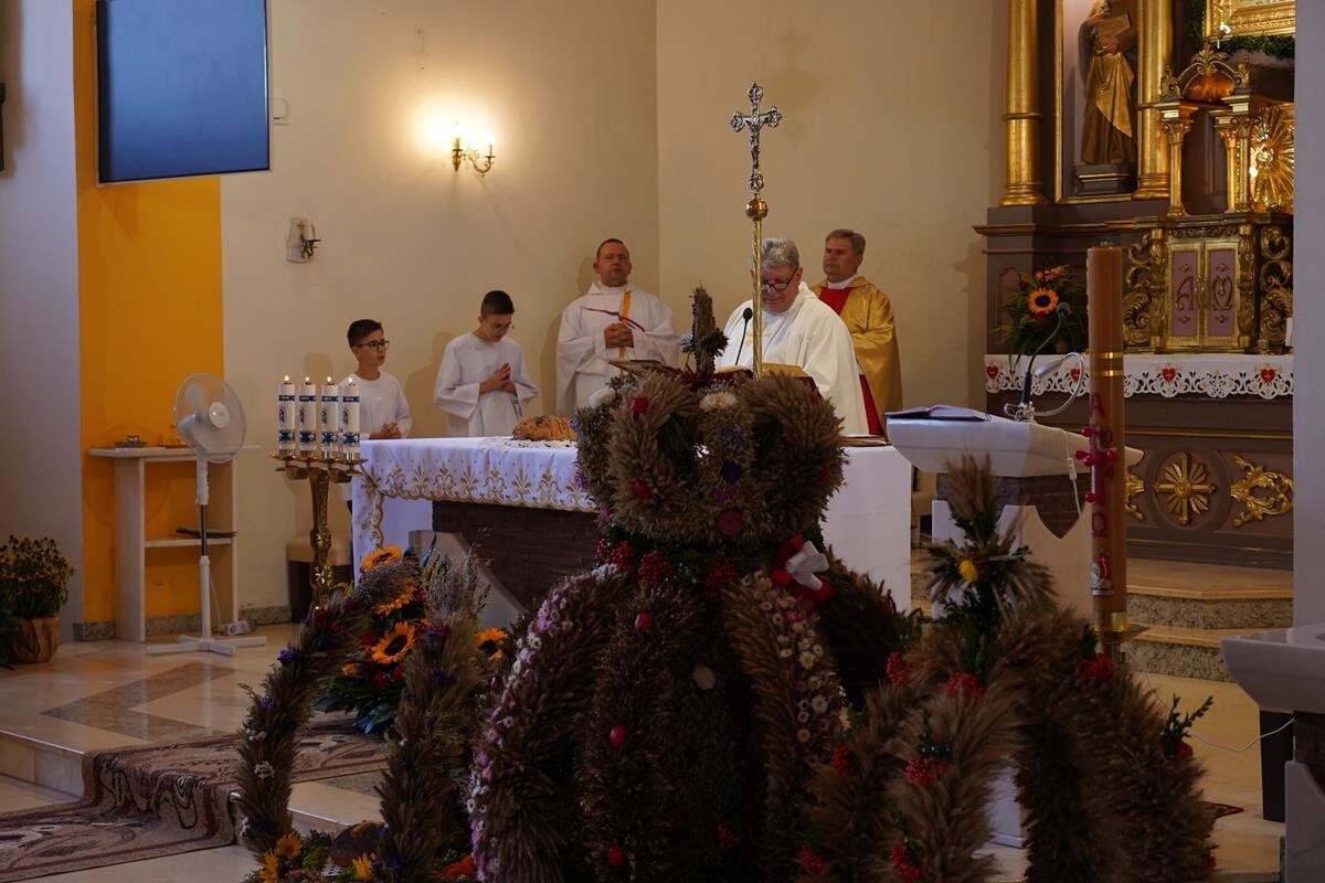 O godzinie 15:00, podczas uroczystej Mszy Świętej, złożyliśmy dziękczynienie Stwórcy za tegoroczne plony. Wierni zgromadzili się, aby wspólnie podziękować za obfitość darów ziemi, które są owocem ciężkiej pracy rolników.