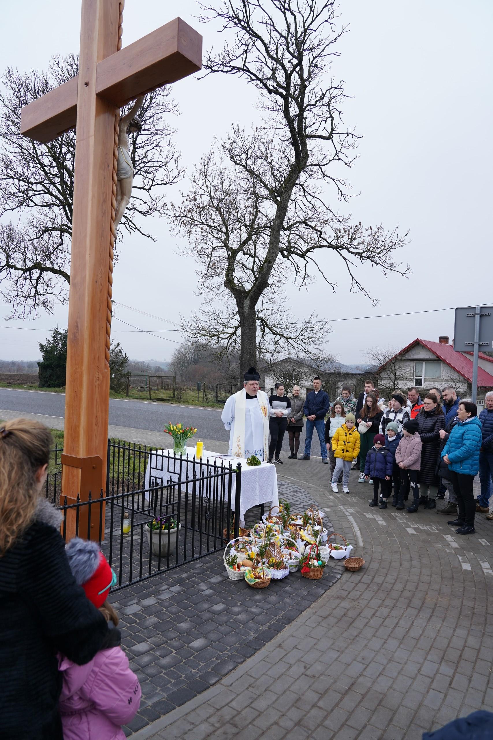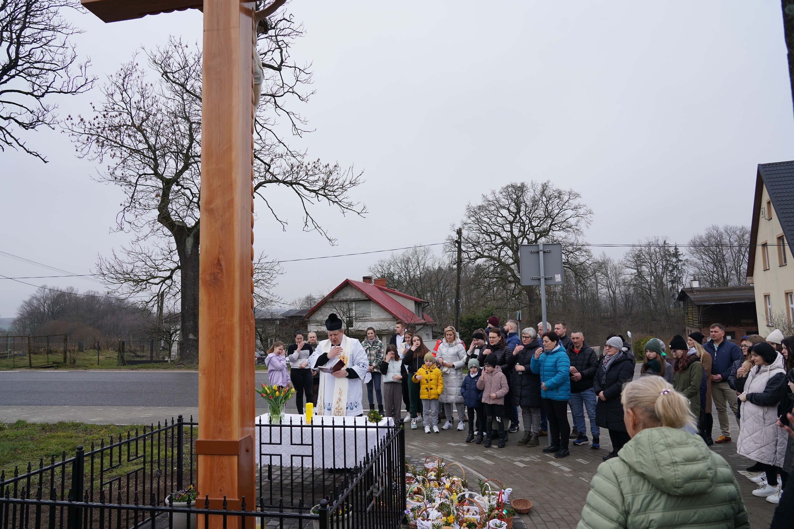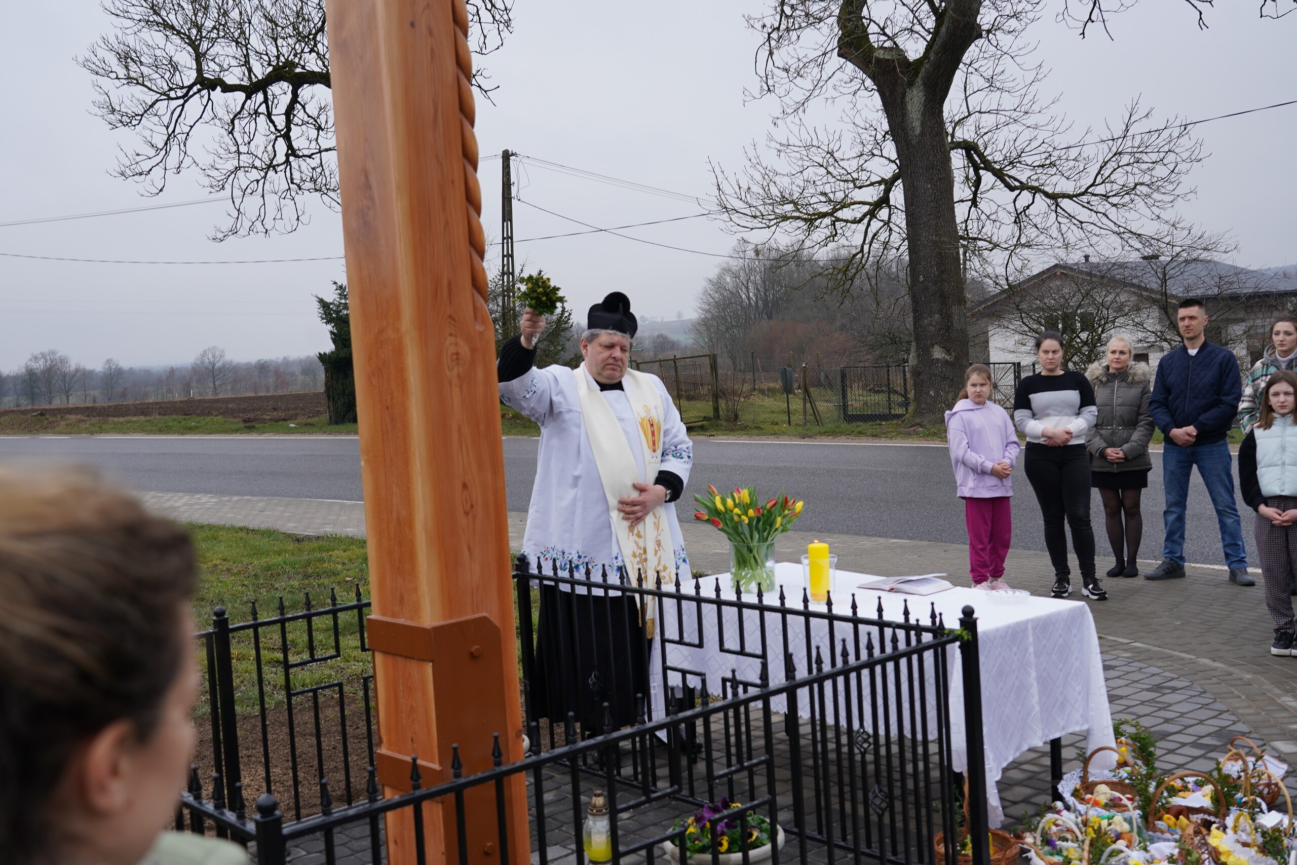 Święcenie wielkanocnych pokarmów w sobotni poranek było najlepszą okazją do poświęcenia nowego przydrożnego Krzyża w Kisewie.