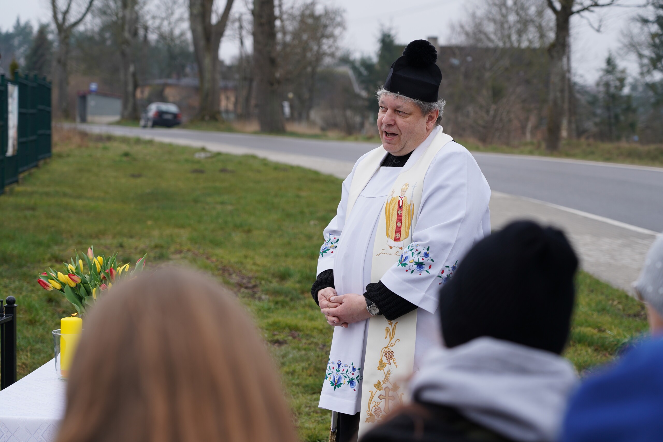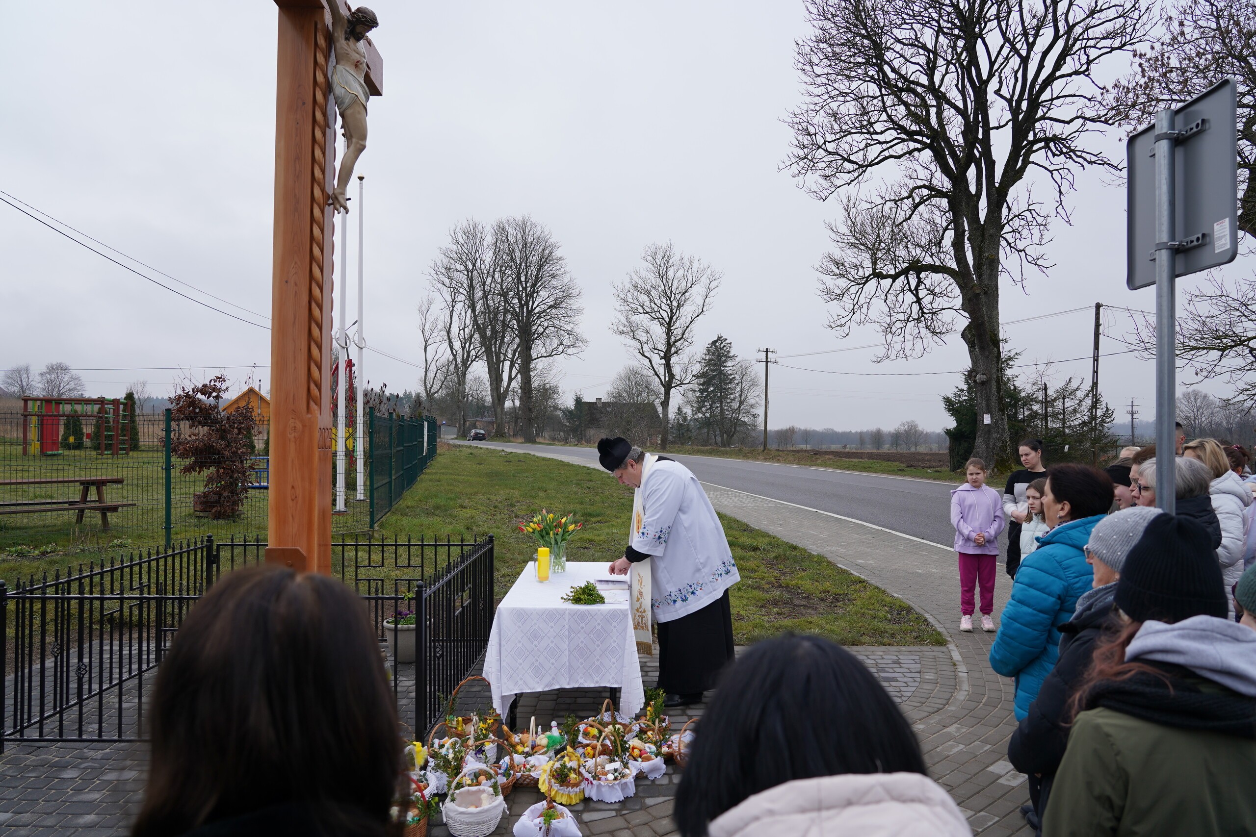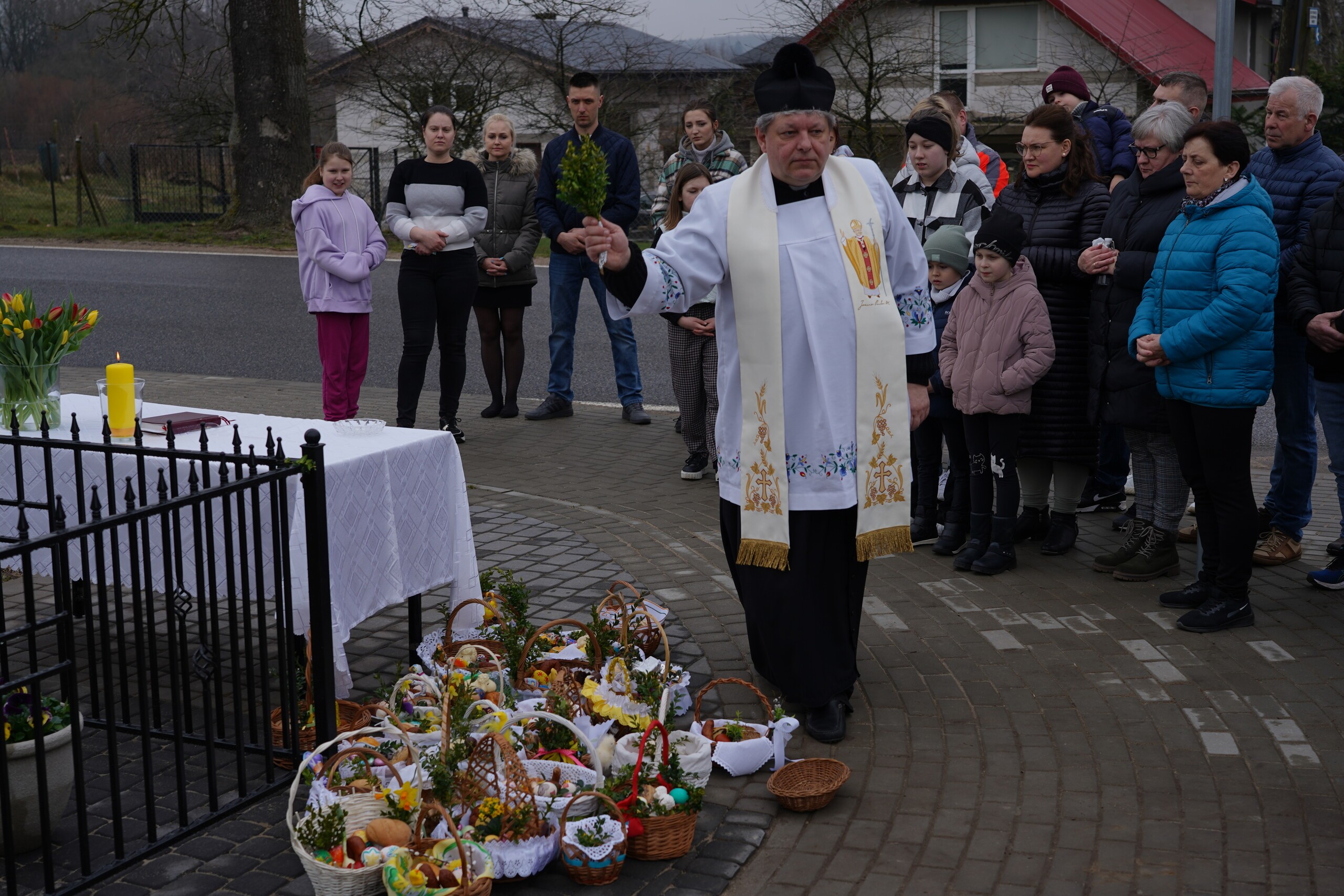 Święcenie wielkanocnych pokarmów w sobotni poranek było najlepszą okazją do poświęcenia nowego przydrożnego Krzyża w Kisewie.