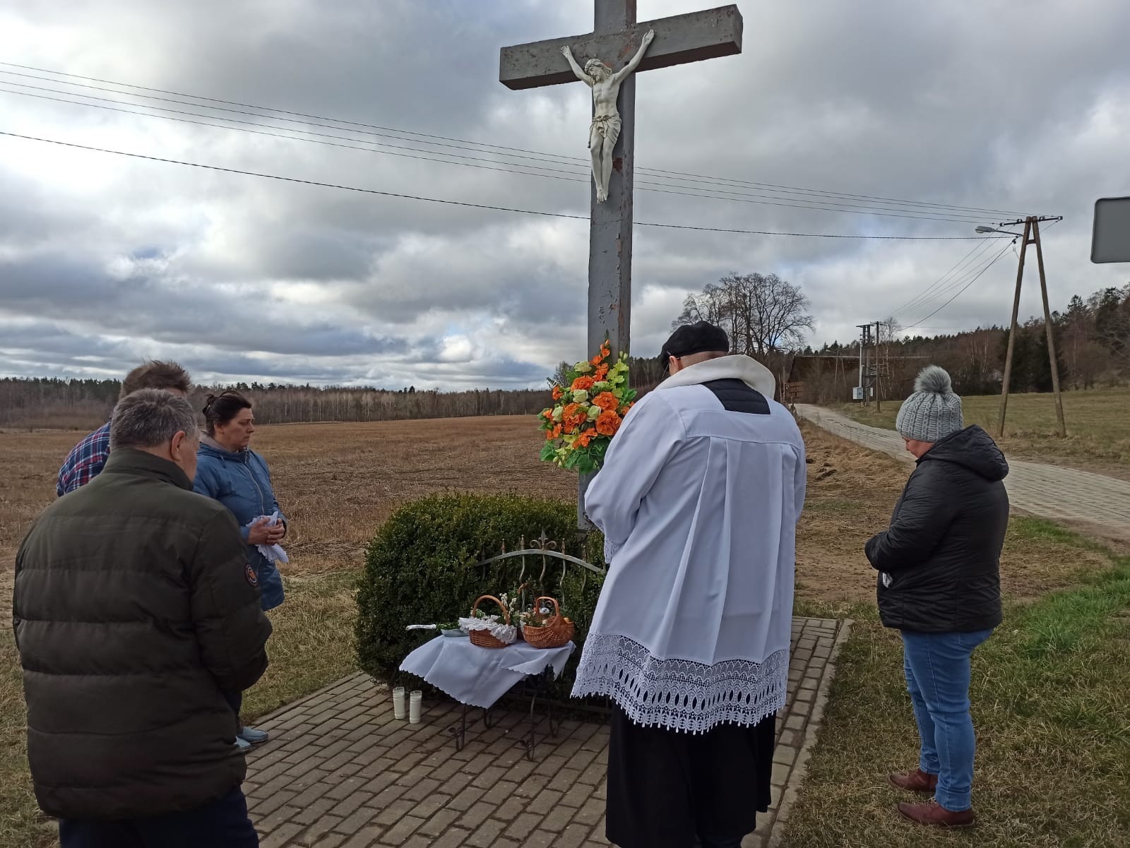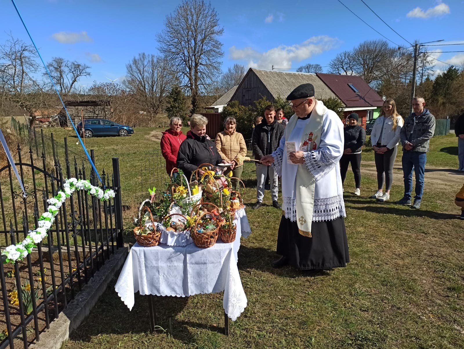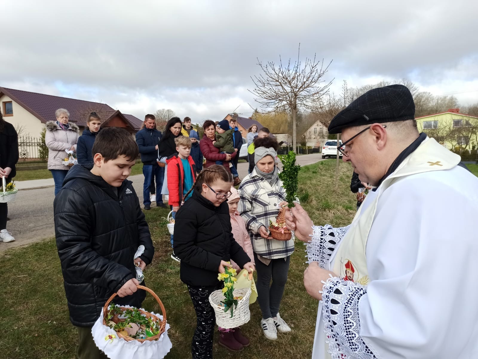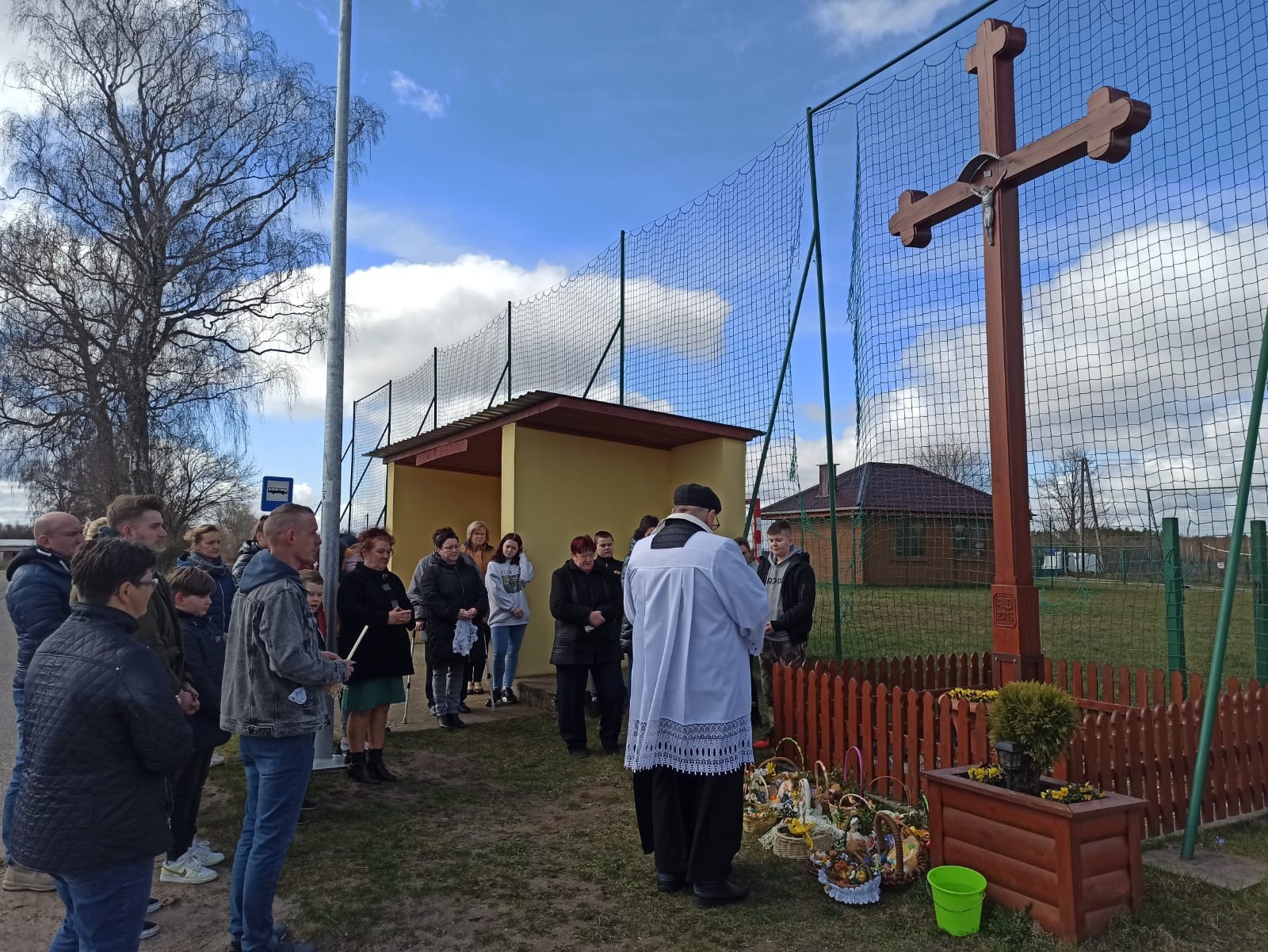 Święcenie pokarmów w całej parafii i nowego krzyża w Świchowie