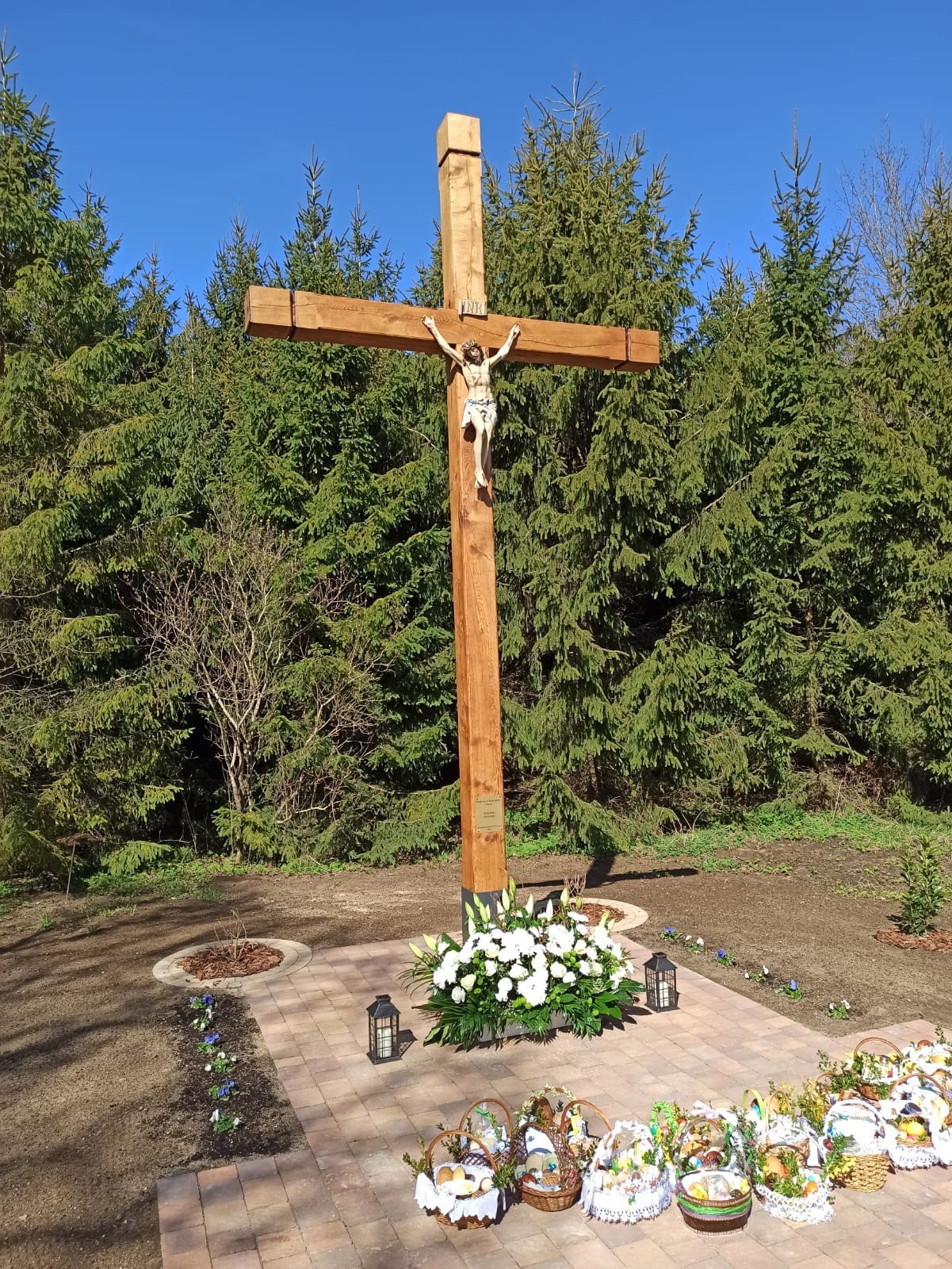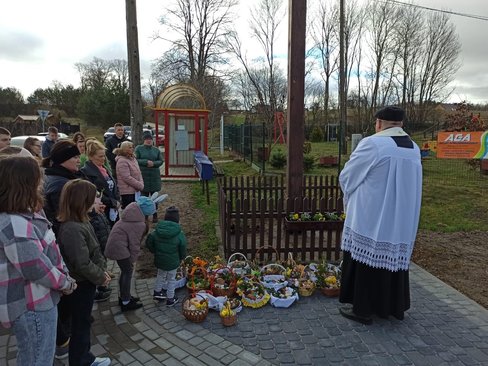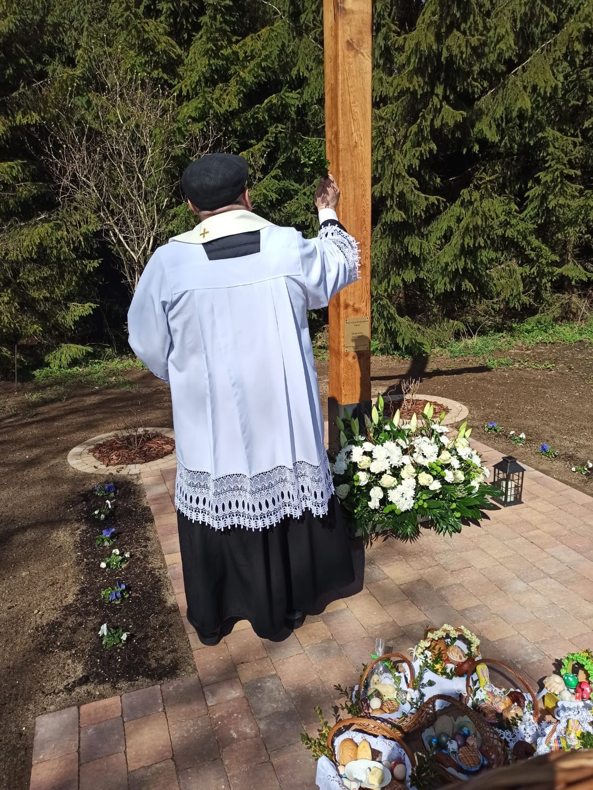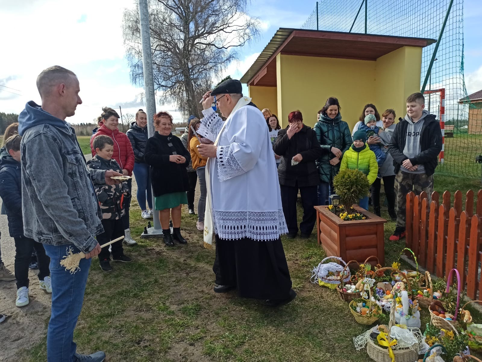 Święcenie pokarmów w całej parafii i nowego krzyża w Świchowie