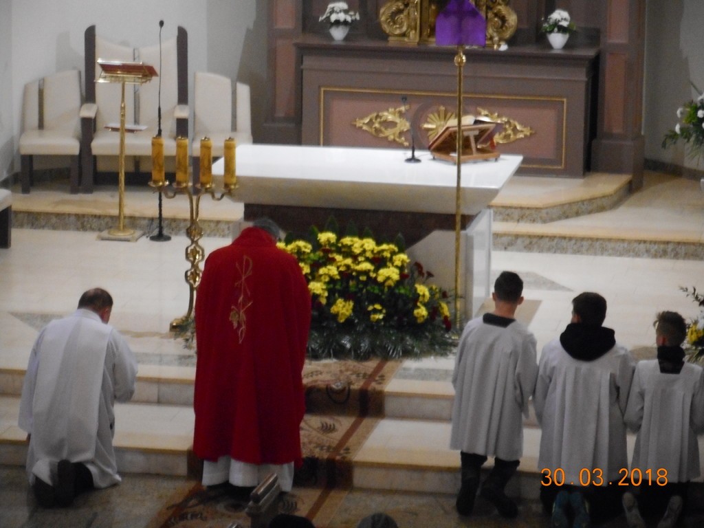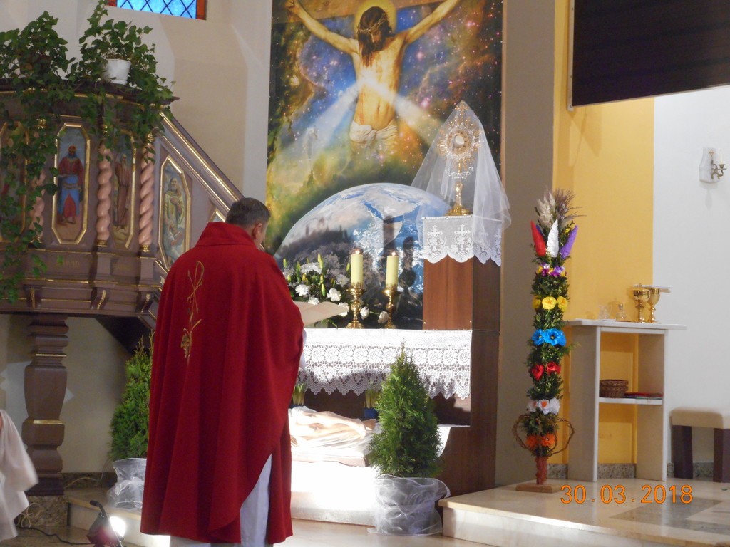 Wielki Piątek to dzień męki i śmierci Zbawiciela na krzyżu. Liturgia Męki Pańskiej z uczczeniem Krzyża i Komunią św. rozpoczęła się o godz. 18.00. Po jej zakończeniu czuwaliśmy przy Grobie Pańskim do godz. 22.00.