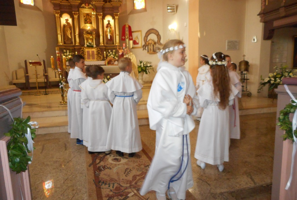 Po uroczystości I Komunii św. dzieci obchodziły tzw. ,,biały tydzień". To siedem dni następujących po sobie, liczonych od pierwszokomunijnej uroczystości kościelnej, które mają na celu upamiętnienie przyjęcia sakramentu Eucharystii. Podczas ,,białego tygodnia" dziewczynki i chłopcy przychodzili do kościoła w stroju komunijnym, by poprzez uczestnictwo we Mszy św. i w nabożenstwie majowym w pełni odczuć wartość przyjętego sakramentu. Poszczególne dni ,,białego tygodnia" poświęcone były głównie Eucharystii. We wtorek dzieci modliły się w intencji misji i wsparły materialnie Papieskie Dzieło Misyjne. Piątek poświecony był Najświętszemu Sercu Pana Jezusa. Dzieci otrzymały obrazki o pierwszych piątkach miesiąca. Tego dnia zostały równiez poświęcone dewocjonalia i rowery. Na zakończenie ,,białego tygodnia" wszystkie dzieci, które przystąpiły w tym roku do I Komunii św. otrzymały pamiątkowe różańce wykonane z drewna oliwkowego z Ziemi Świętej.