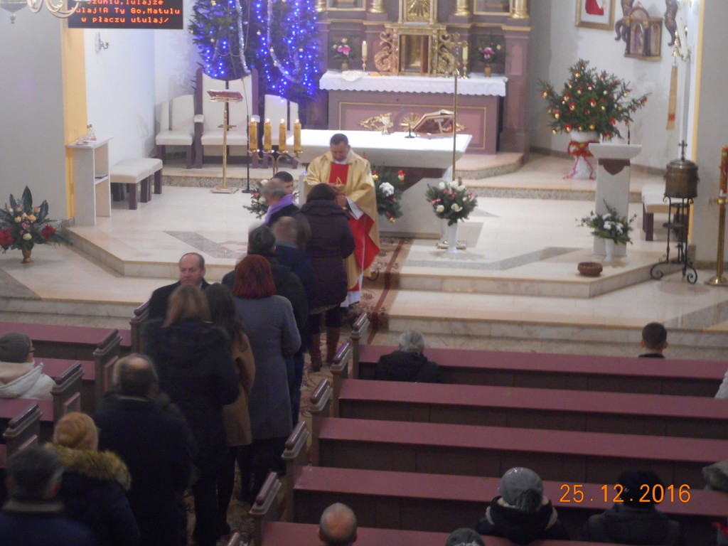 W nocy z 24 na 25 grudnia w kościele parafialnym Ks. Proboszcz Wojciech Czajkowski odprawił Pasterkę. Uroczysta Msza św. Bożego Narodzenia sprawowana o północy zgromadziła liczną rzeszę wiernych.Oprawę Pasterki uświetniła grą na skrzypcach Michalina Jakusz.