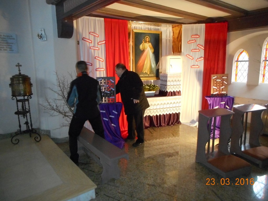 Mieszkancy parafii czynnie zaangażowali sie w tegoroczne przygotowanie wystroju naszej świątyni na czas Triduum Paschalnego ( dekoracja ciemnicy, Grobu Pańskiego) oraz Niedzieli Zmartwychwstania Pańskiego.