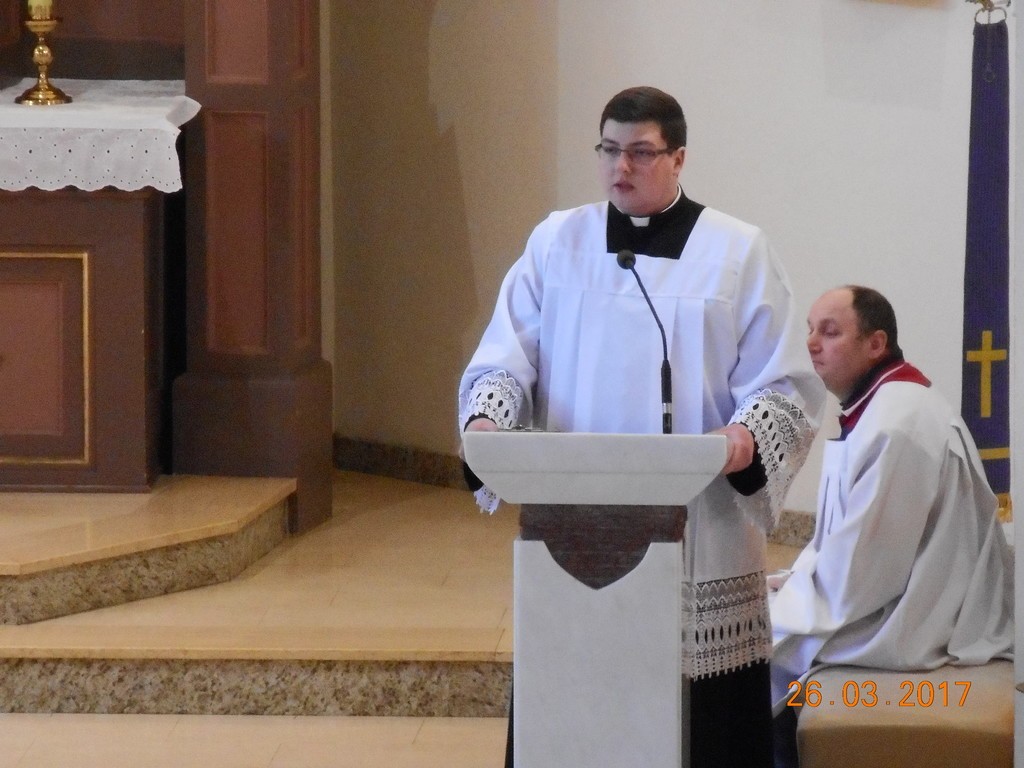 26 marca gościliśmy w naszej parafii kleryka Wyższego Seminarium Duchownego w Pelplinie - Szymona Orzech. Po Mszy św. miało miejsce spotkanie z młodzieżą przygotowującą się do sakramentu bierzmowania. Alumn przybliżył młodym ludziom temat powołań oraz opowiedział o życiu i funkcjonowaniu naszej diecezjalnej uczelni kształcącej przyszłych kapłanów.