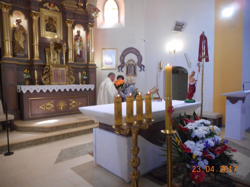 W niedzielę, 23 kwietnia, przypadała uroczystość ku czci św. Wojciecha, biskupa i męczennika, głównego patrona Polski. Tego dnia imieniny obchodził Ks. Proboszcz Wojciech Czajkowski. Dzień Imienin, to jedna z niewielu okazji, by wyrazić naszemu Księdzu Proboszczowi wdzięczność za trud posługi kapłańskiej w naszej wspólnocie. Na Mszy św. o godz. 11.15 parafianie złożyli Ks. Wojciechowi serdeczne życzenia imieninowe.