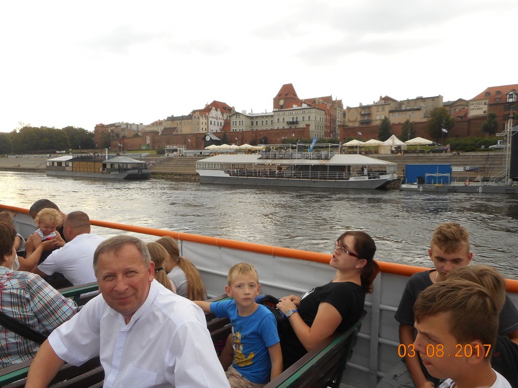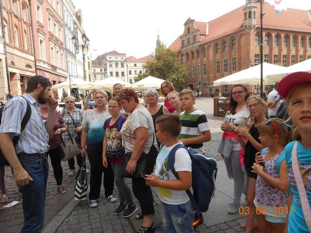 3 sierpnia wczesnym rankiem wybraliśmy się na wycieczkę autokarową do Torunia. Pierwszym punktem naszej wyprawy była wizyta w Sanktuarium NMP Gwiazdy Nowej Ewangelizacji i św. Jana Pawła II - świątyni, która została wzniesiona z inicjatywy o.Tadeusza Rydzyka.Stamtąd udaliśmy się do Obserwatorium Astronomicznego w Piwnicach, gdzie zobaczyliśmy największy teleskop w Polsce i obejrzeliśmy nowoczesny warsztat pracy astronoma. Następnie udaliśmy na spotkanie z przewodnikiem, który pokazał nam główne atrakcje Torunia. W czasie spaceru zatrzymaliśmy się m.in. w domu Mikołaja Kopernika, Katedrze św. Janów oraz w Planetarium. Najbardziej jednak podobała nam się wizyta w Żywym Muzeum Piernika i udział w warsztatach, w czasie których poznaliśmy rytuały związane z wypiekiem toruńskich specjałów. Po części teoretycznej zasiedliśmy do stołu, by własnoręcznie przygotować ciasto, a później, przy użyciu drewnianych form, wypiec z niego wyjątkowe pierniki. Na zakończenie na uczestników wycieczki czekał rejs statkiem po Wiśle. To była niezapomniana wyprawa. Pełni wrażeń późnym wieczorem wróciliśmy do domu.