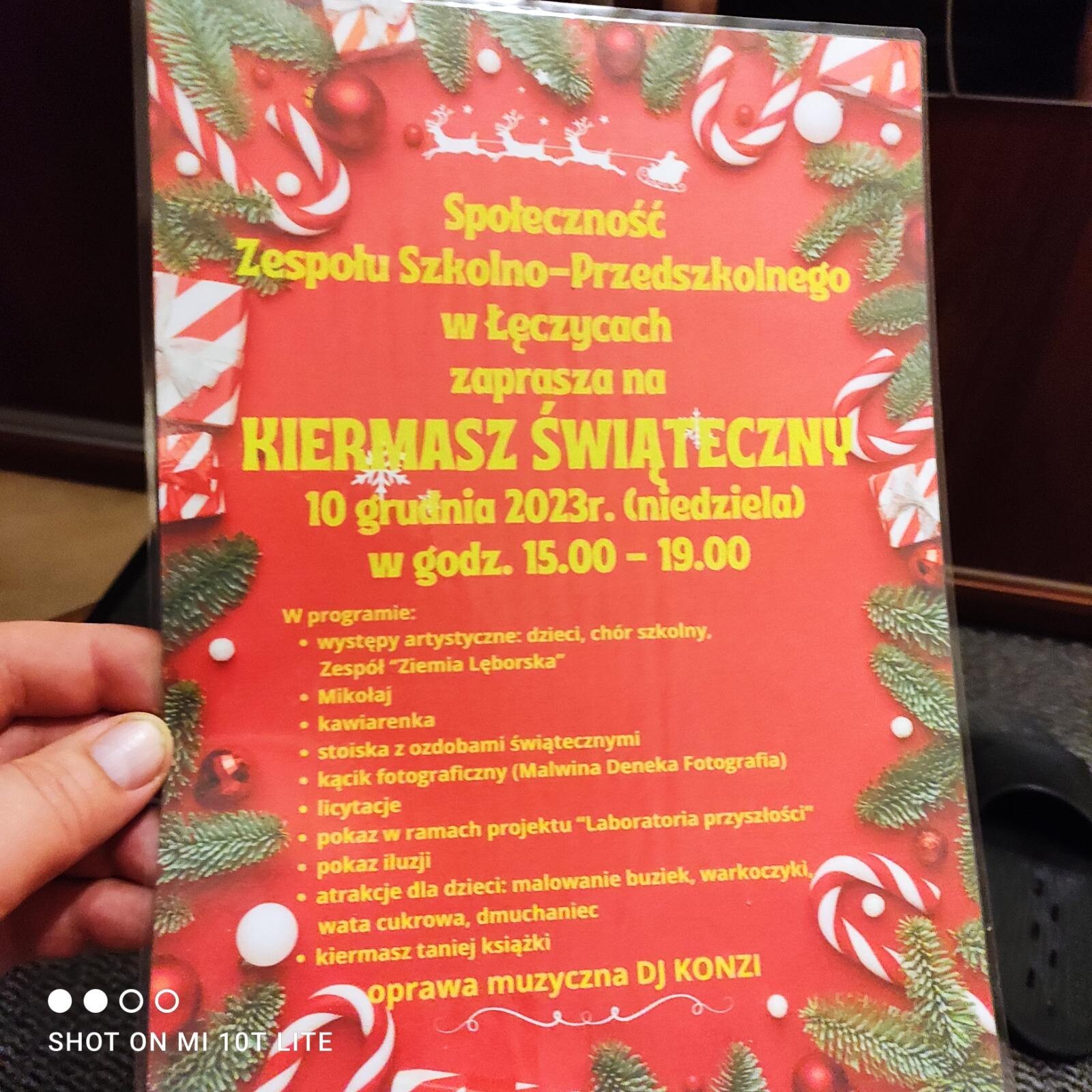 10 grudnia (niedziela) w Zespole Szkolno-Przedszkolnym w Łęczycach w godz. 15:00-19:00 odbędzie się kiermasz świąteczny. Będzie to okazja do licytacji przedmiotów, zakupu książki. Nie zabraknie też wizyty św. Mikołaja, występów artystycznych, a także dodatkowych atrakcji dla dzieci i dorosłych. Zapraszam w imieniu organizatorów.